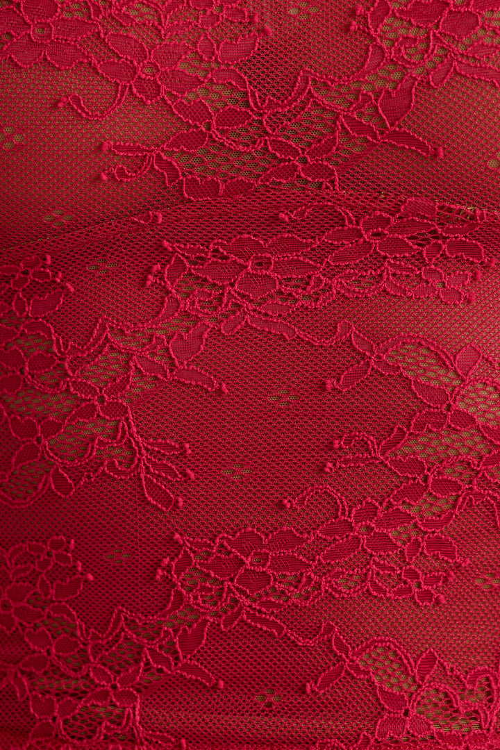 Kiraz Kırmızısı Dantel Volanlı Mini Etek