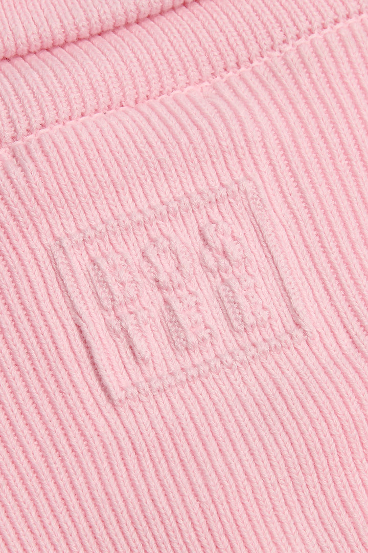 Açık Pembe Kaburga Örgülü Kısa Fermuarlı Sweatshirt