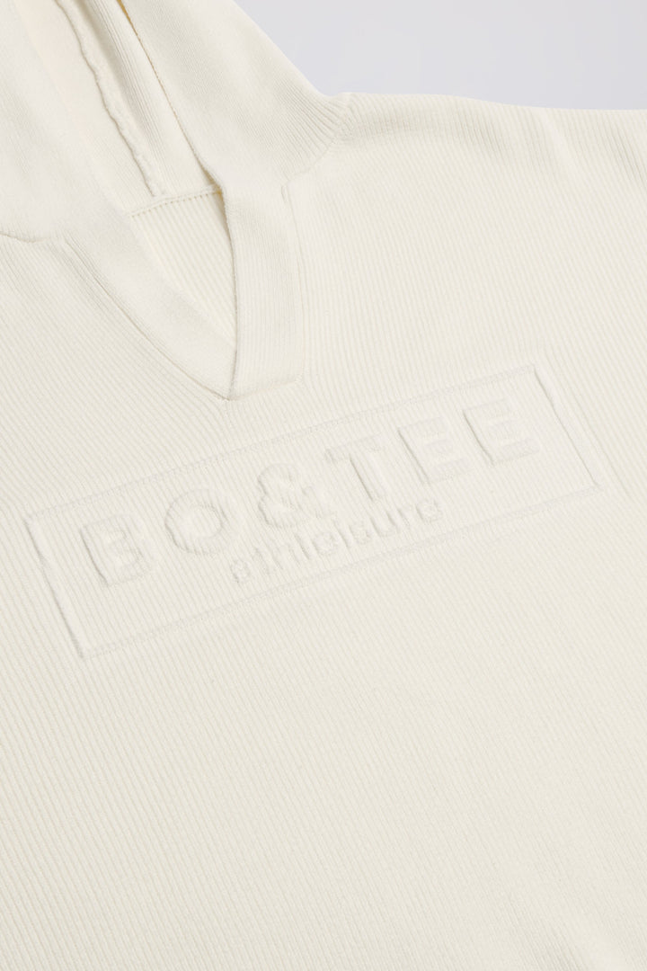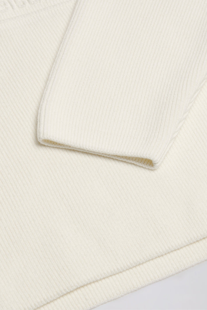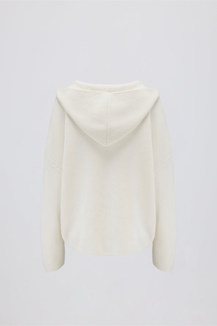 Fildişi Rengi Kaburga Örgülü Büyük Boy Kapüşonlu Üst