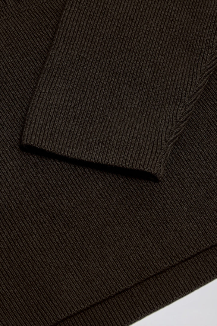 Ceviz Rengi Kaburga Örgülü Büyük Boy Kapüşonlu Üst