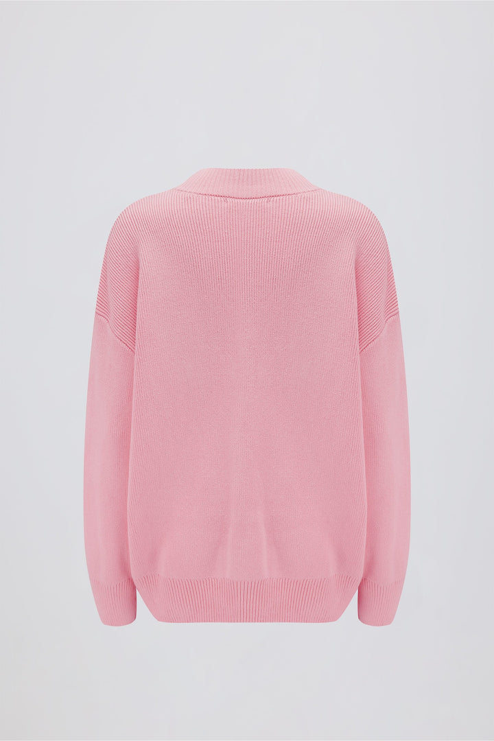 Açık Pembe Renkli Kaburga Örgülü Büyük Boy Kazak