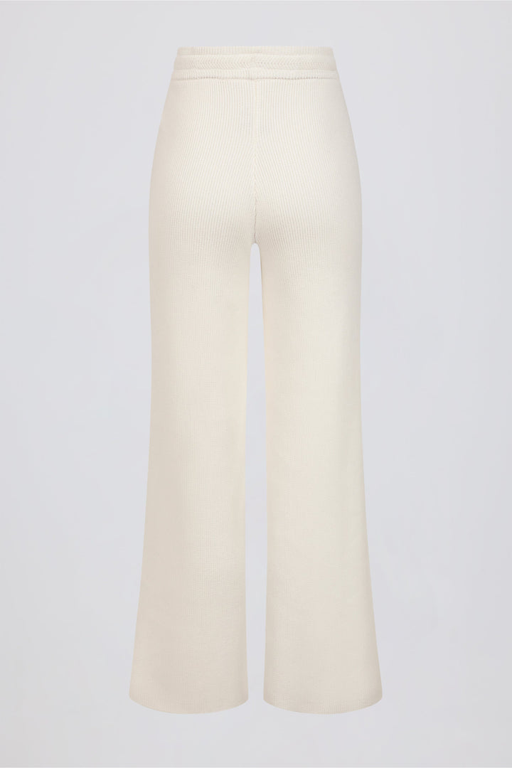 Fildişi Rengi Kaburga Örgülü Geniş Paçalı Jogger Pantolon