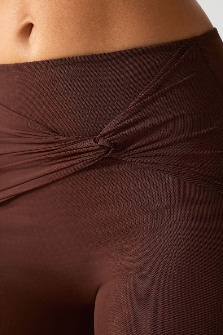 Espresso Rengi File Orta Bel Büküm Üstü Flare Pantolon