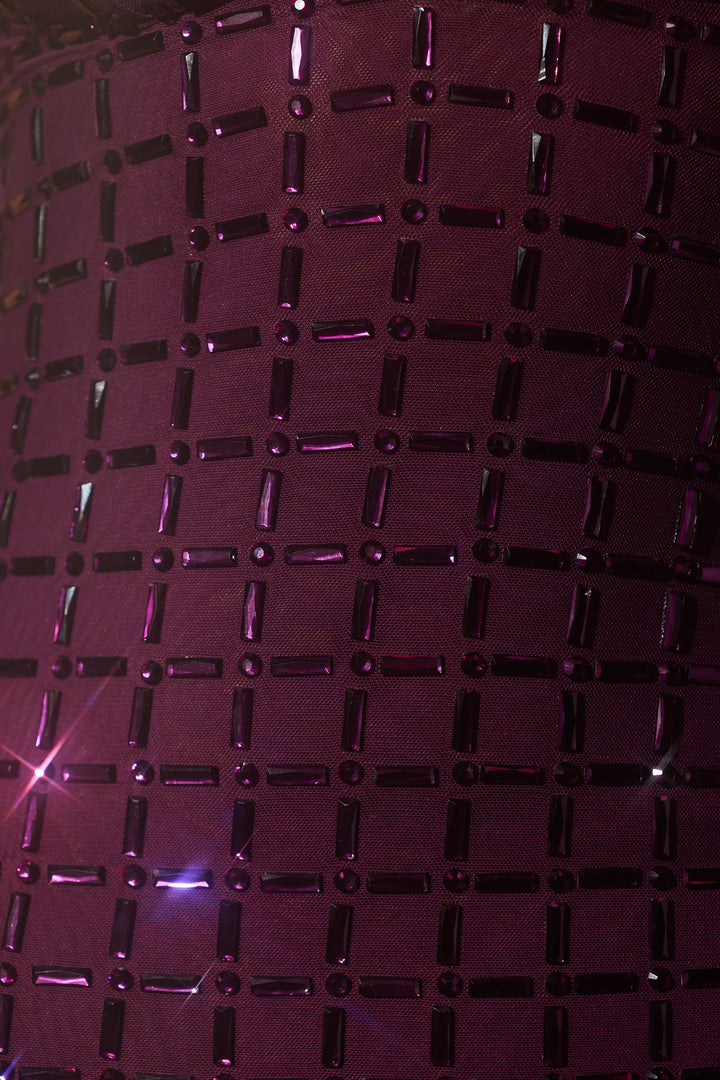 Derin Mor Süslemeli Derin V Yaka Mini Elbise