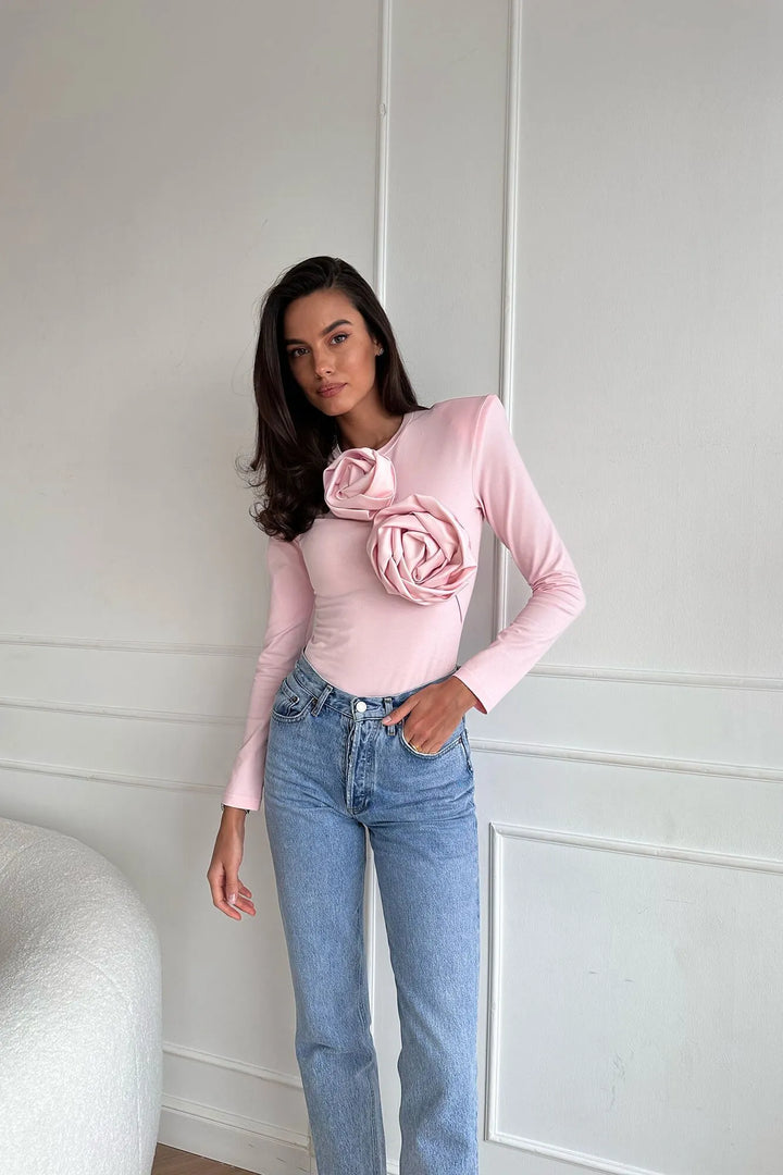 Gül Detaylı Örme Bodysuit