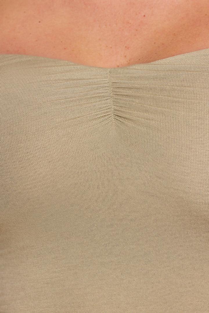 Uzun Kollu Omuzları Açık Modal Kaşmir Karışımlı Uzun Elbise Taupe Rengi
