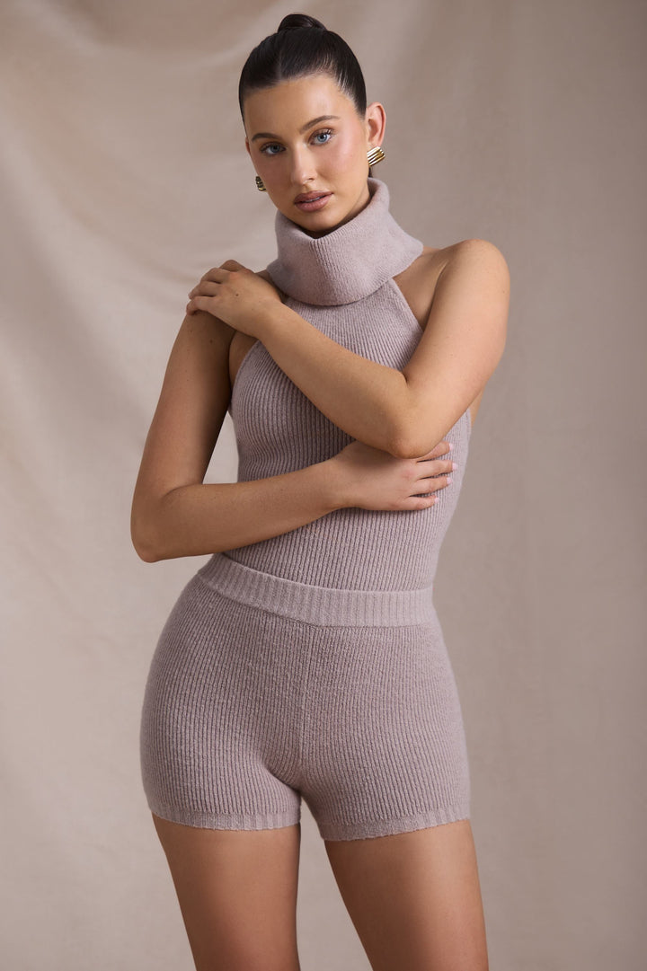Taupe Rengi Kaburga Örgü Şort