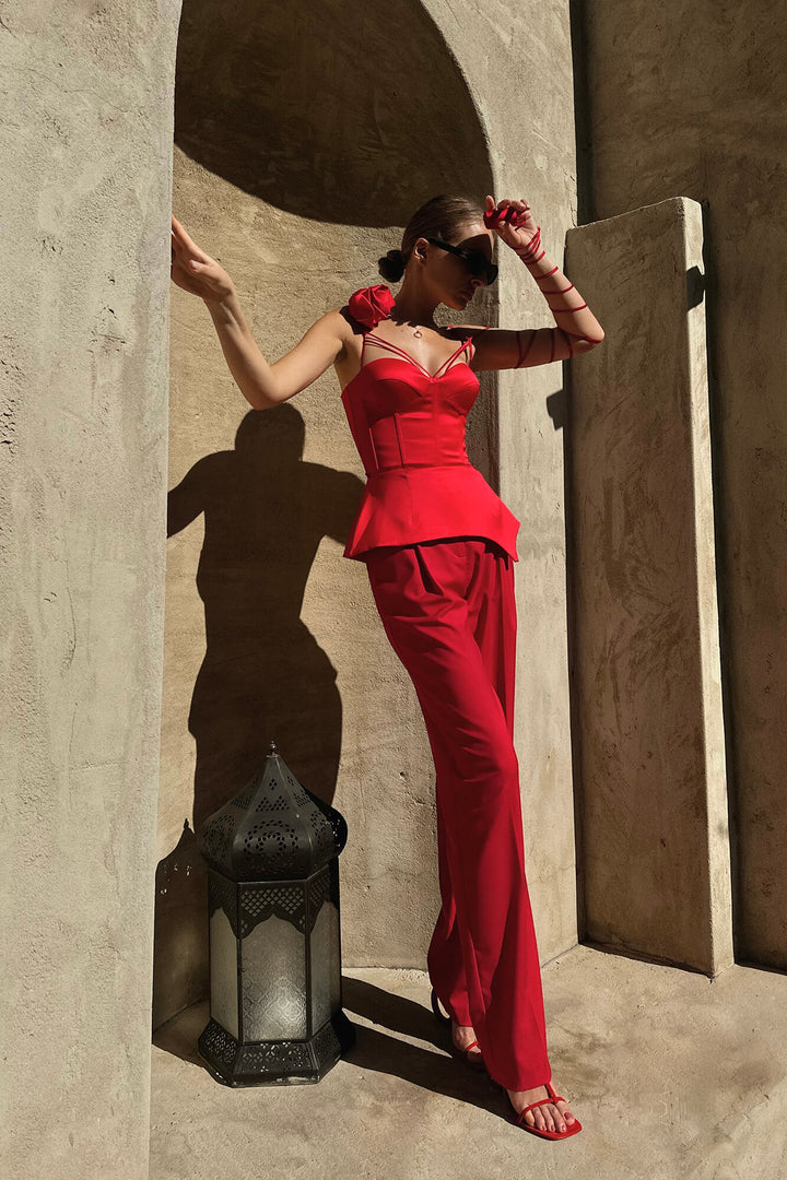 Gül Detaylı Saten Büstiyer Üst