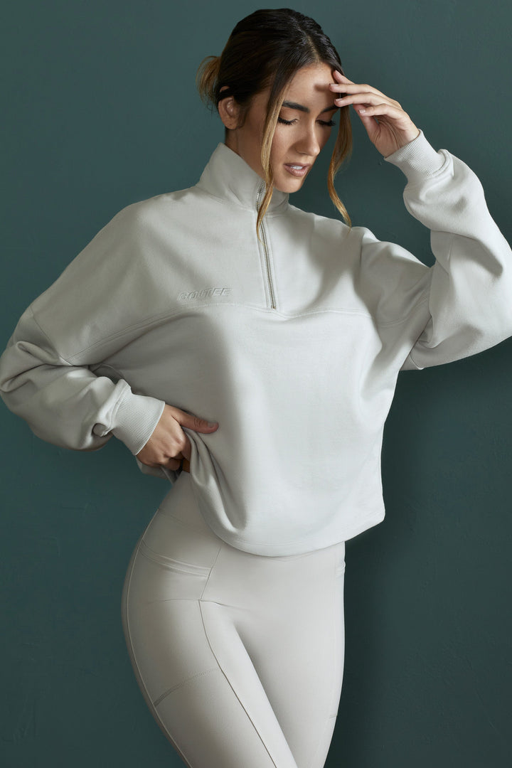 Gri Büyük Boy Yarım Fermuarlı Sweatshirt