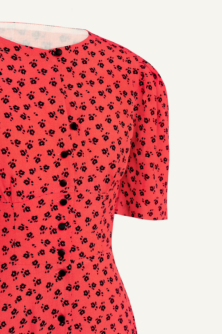 Kısa Kollu Düğmeli Midi Elbise