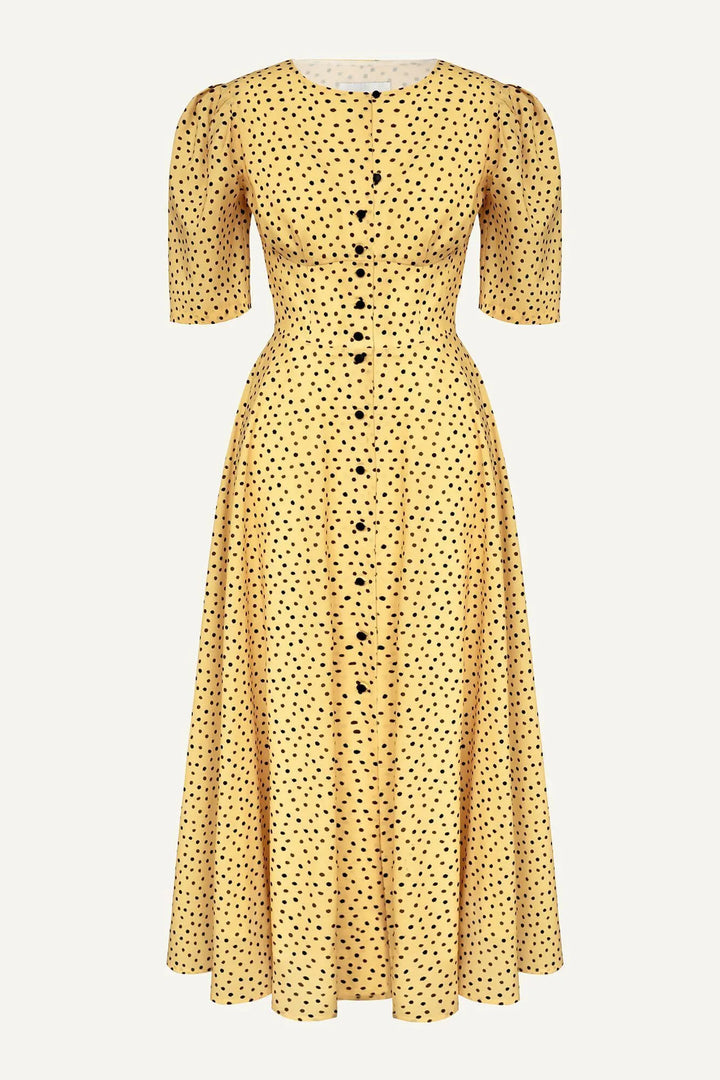 Kısa Kollu Düğmeli Midi Elbise