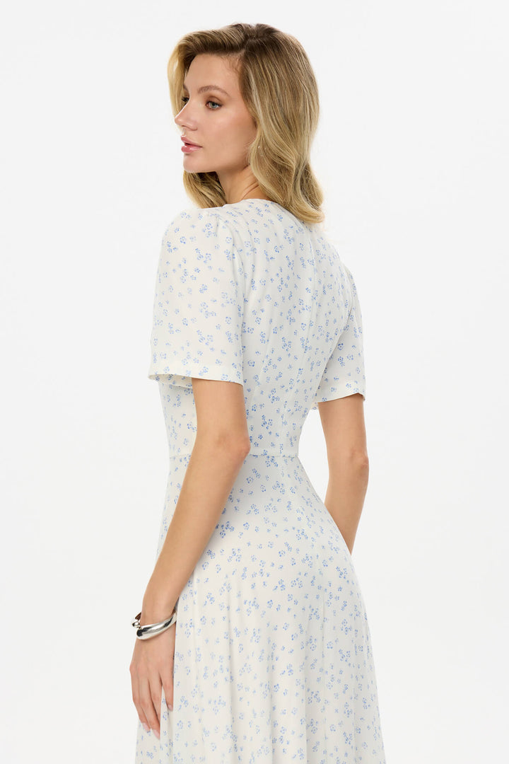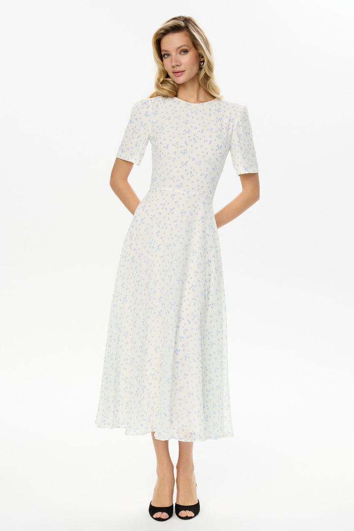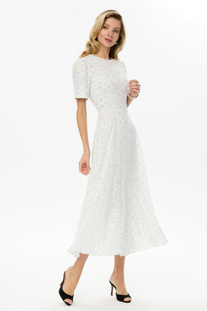 Kısa Kollu Çiçekli Midi Elbise