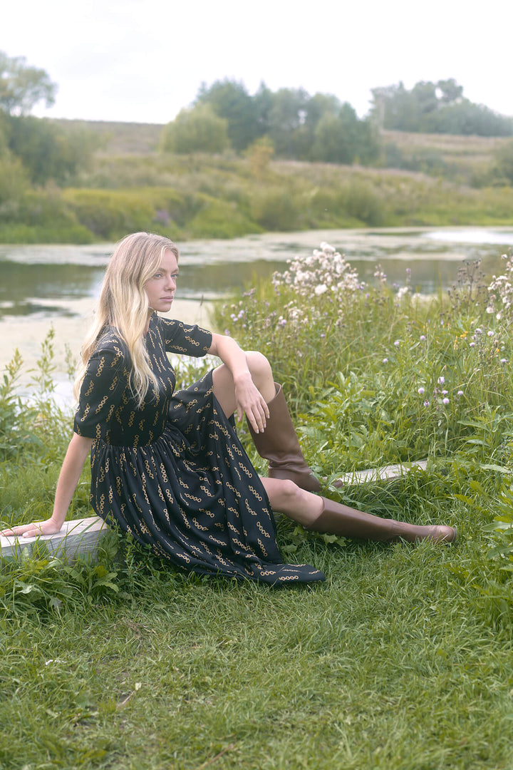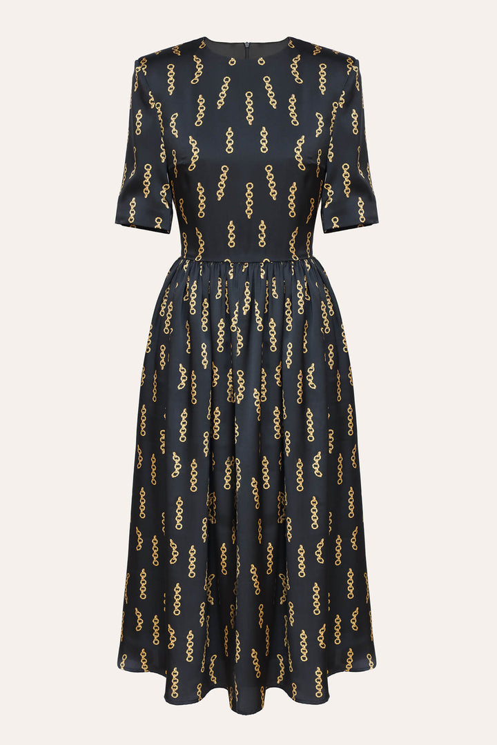 Kısa Kollu Büzgülü Etek Midi Elbise