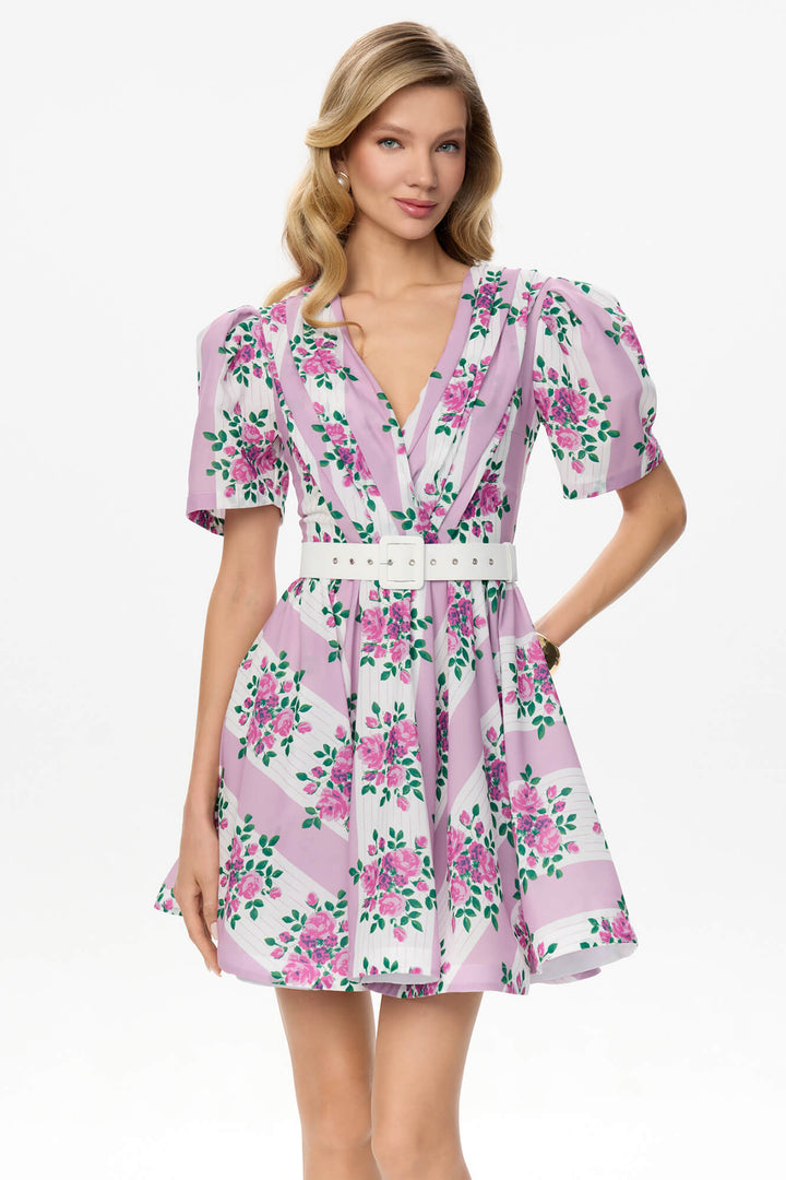 Güneş Eteğiyle Kısa Kollu Mini Elbise