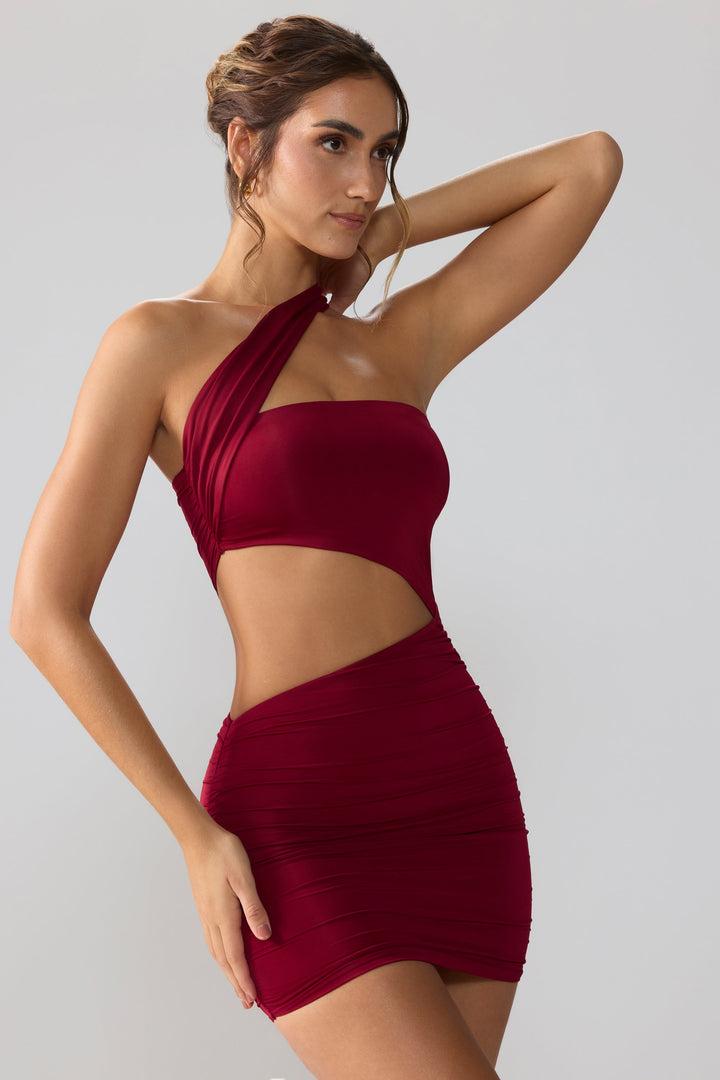 Slinky Jersey Rüstik Kesikli Ruby Mini Elbise