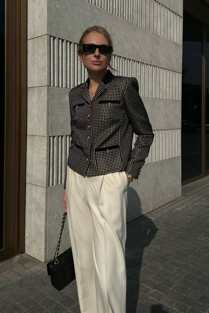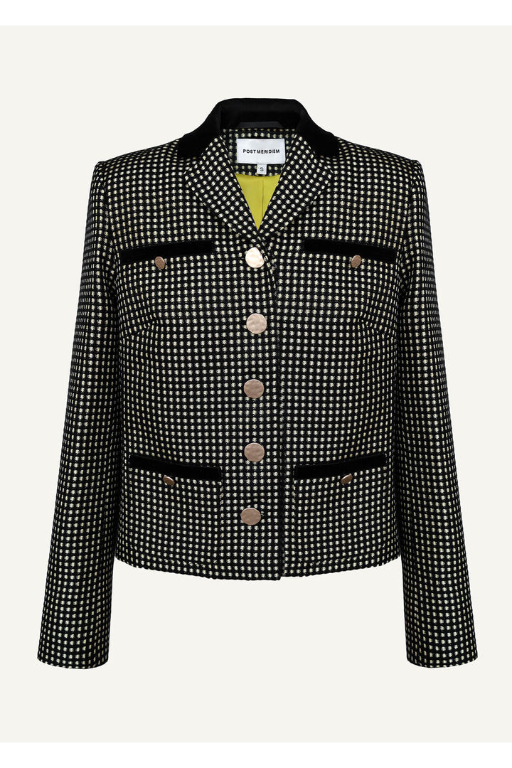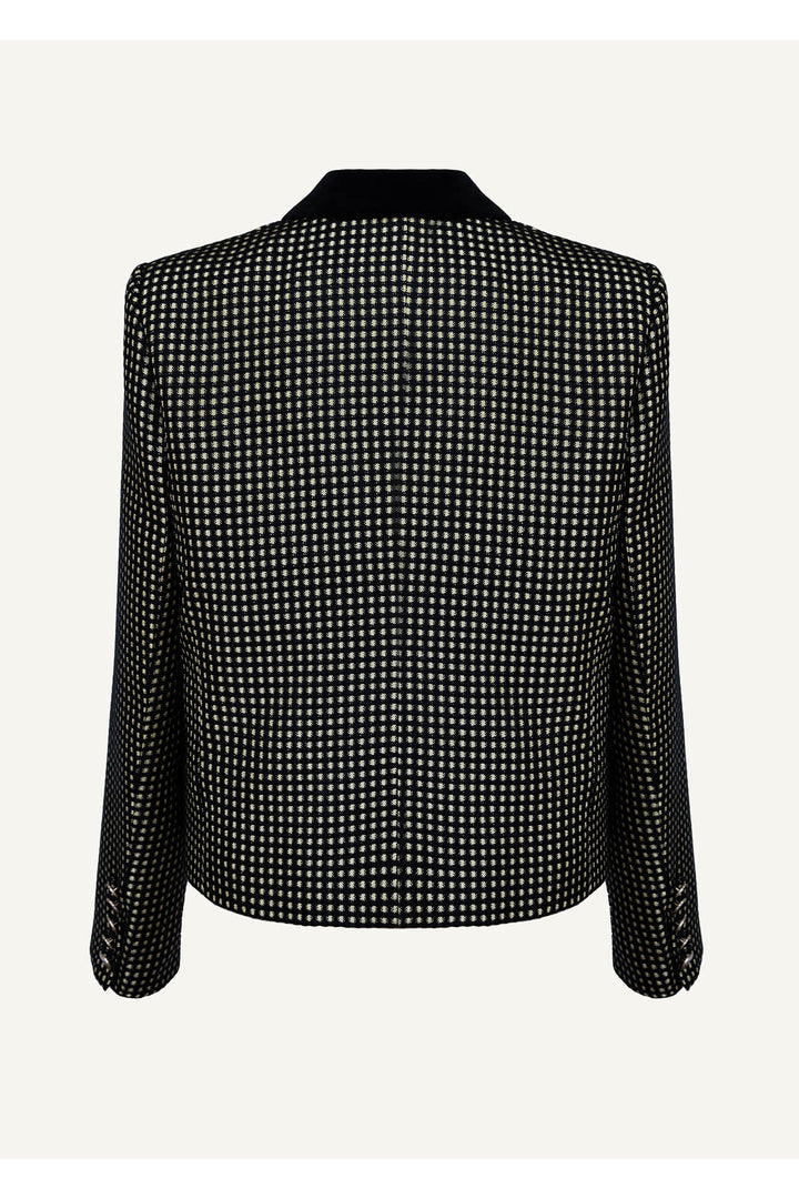 Tek Sıralı Kadife Kenarlı Ekose Ceket