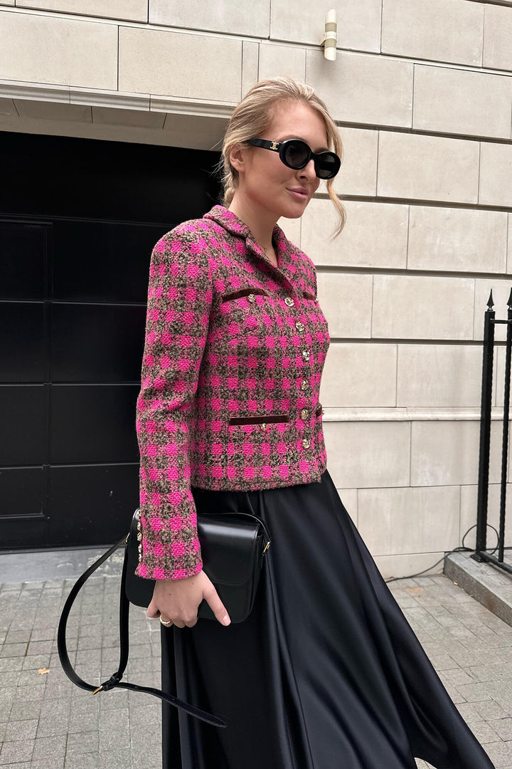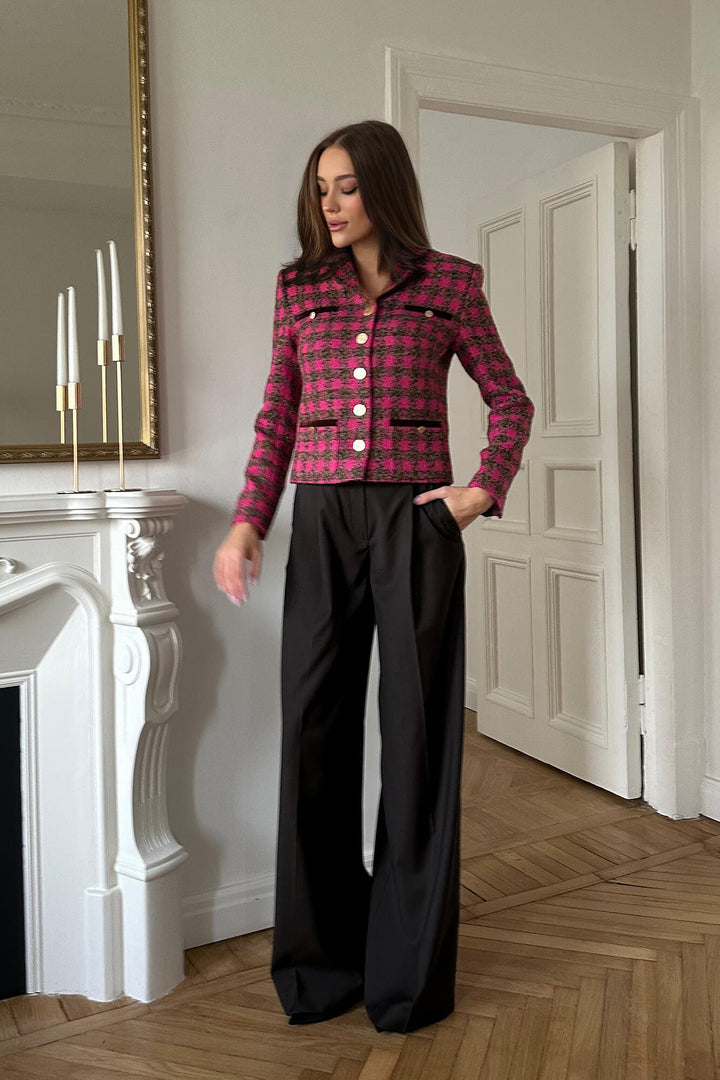 Tek Sıralı Kadife Kenarlı Ekose Ceket