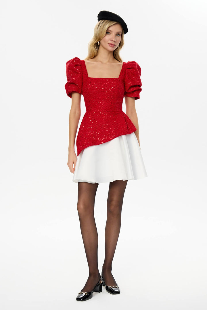 Kare Yaka Kısa Kollu Tweed Üst