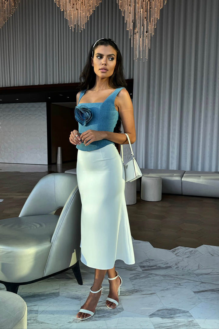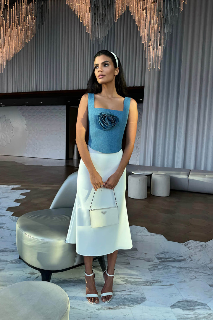 Çıkarılabilir Gül Detaylı Kare Yaka Üst