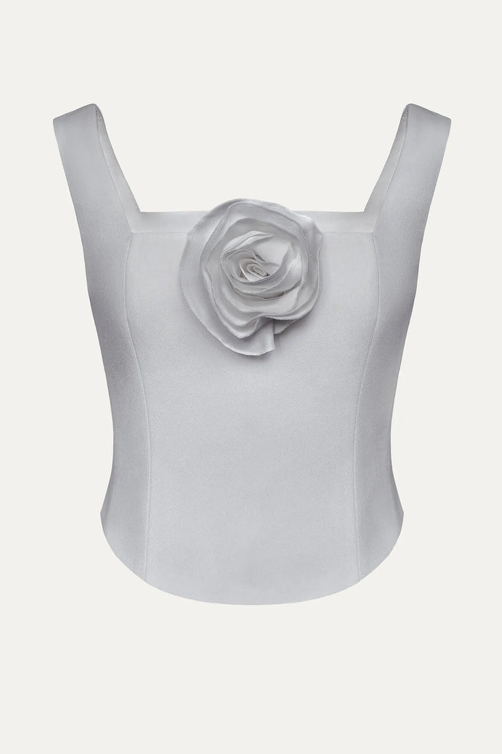 Çıkarılabilir Gül Detaylı Kare Yaka Üst