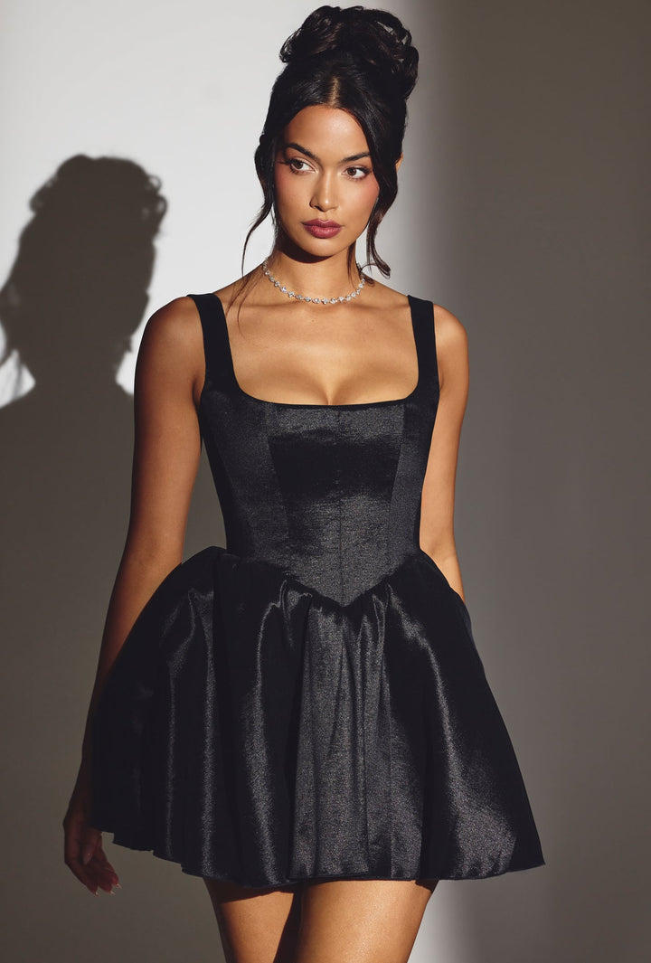 Jet Siyah Dokuma Tafta Korse Mini Elbise