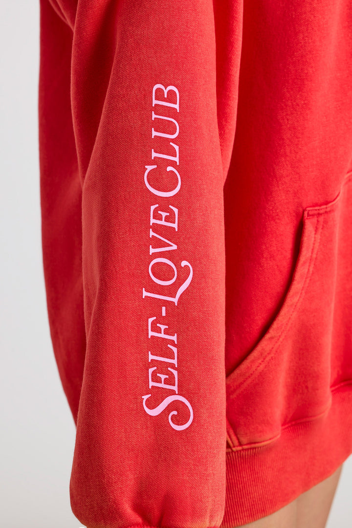 Kırmızı Büyük Boy Kapüşonlu Üst