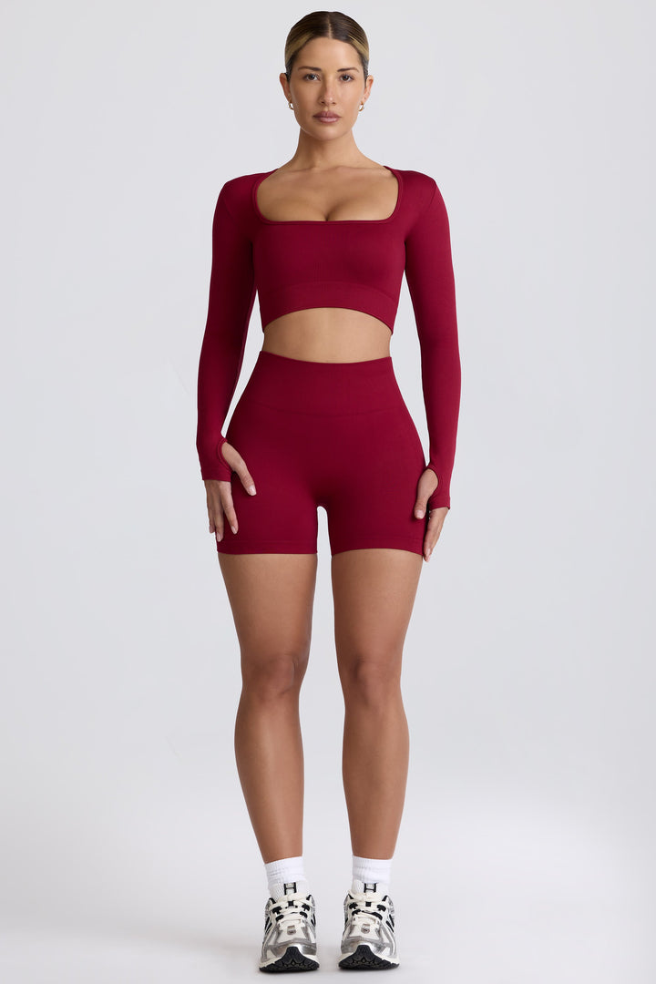 Bordo Super Sculpt Dikişsiz Yüksek Bel Mini Şort