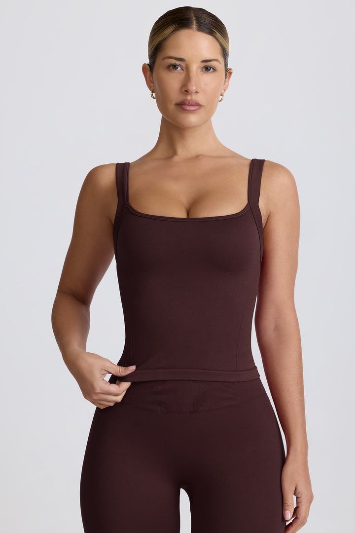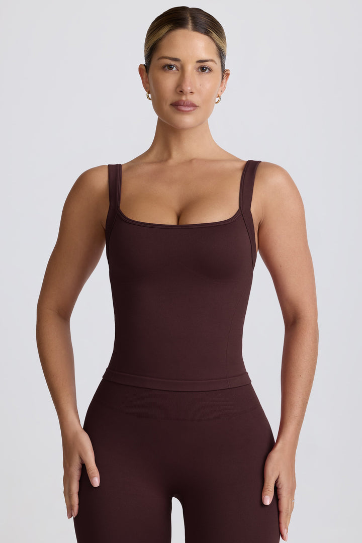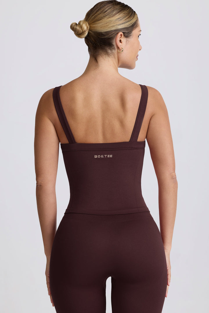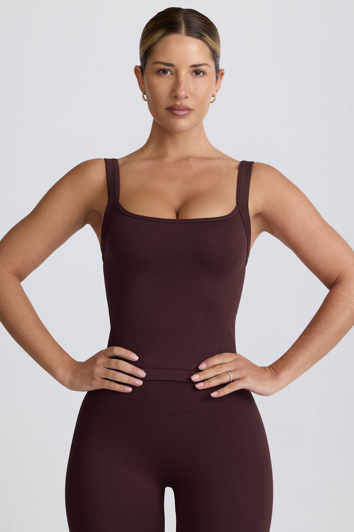 Çikolata Rengi Super Sculpt Dikişsiz Uzun Kollu Atlet