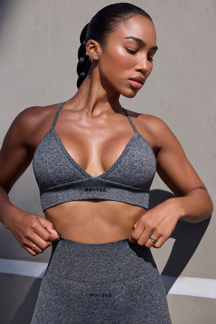 Super Sculpt Dikişsiz Üçgen Spor Sütyeni Marl Siyah