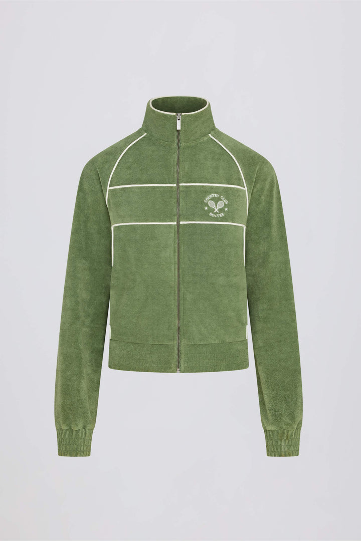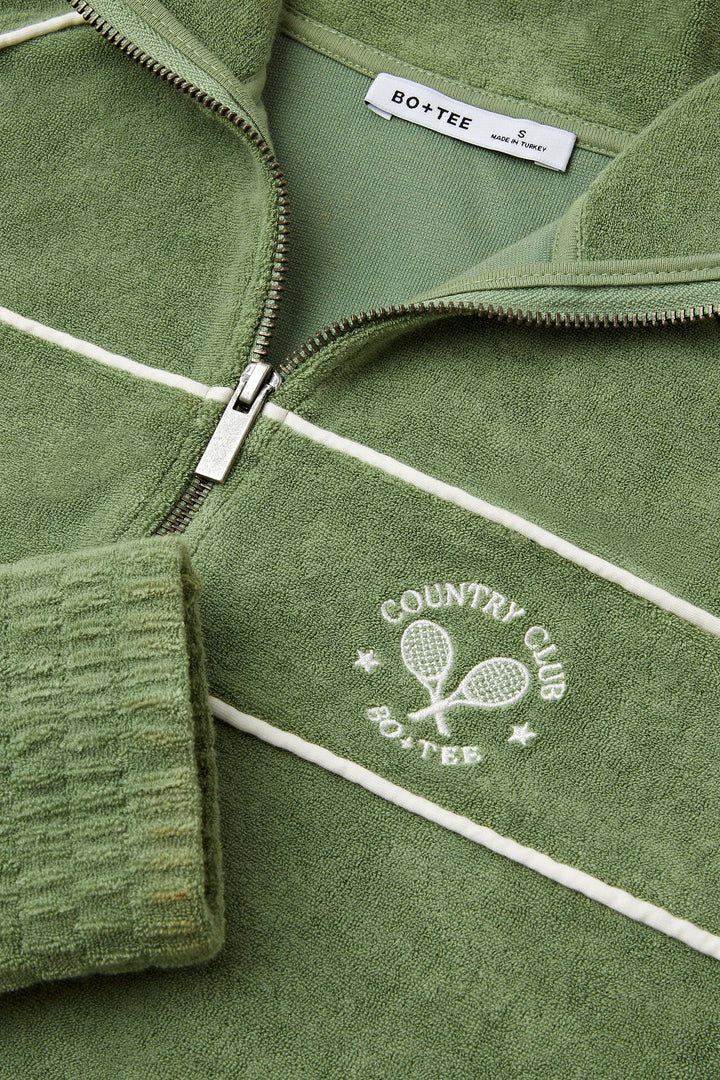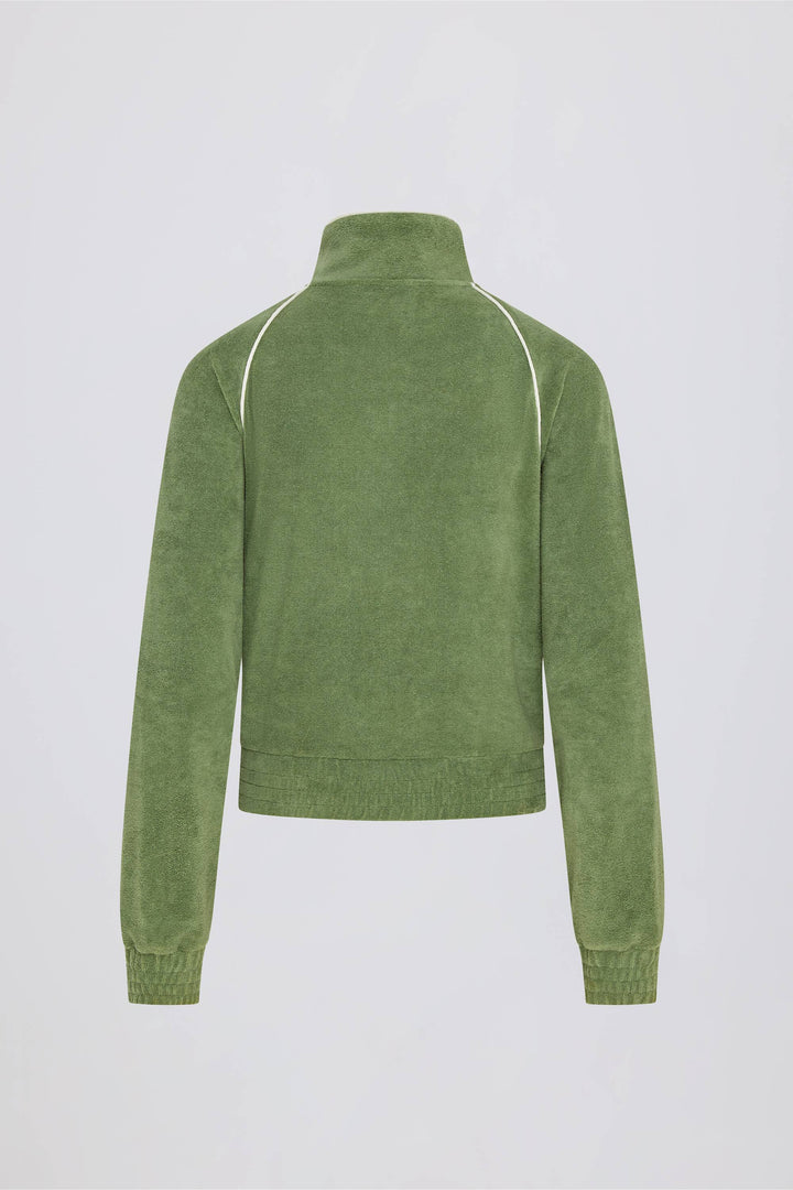 Yeşil Renkli Havlu Fermuarlı Kısa Sweatshirt