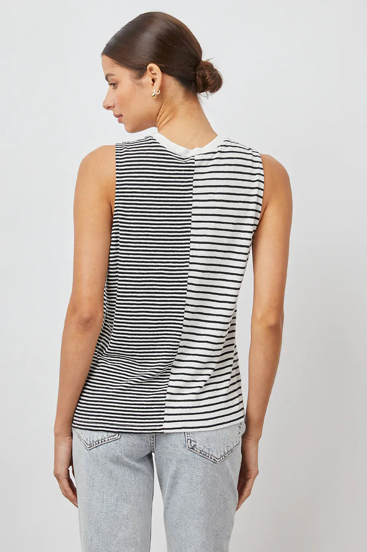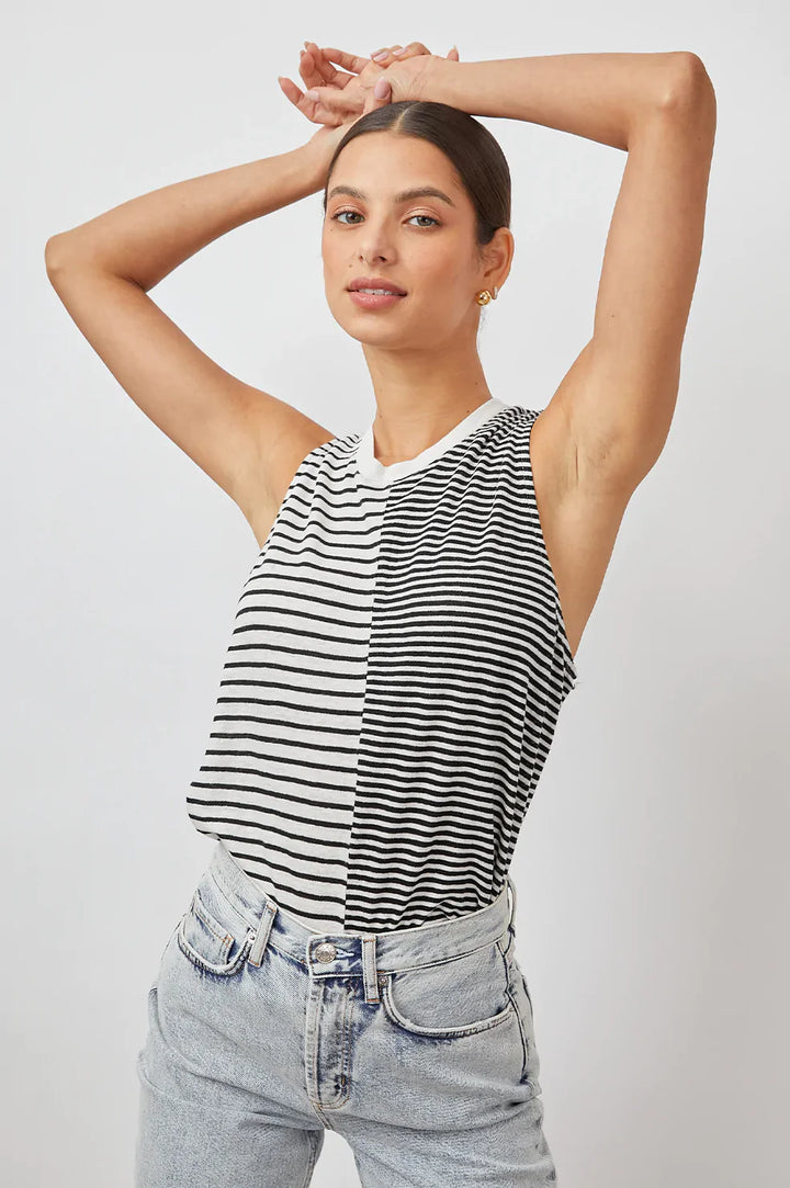 Bölünmüş Tank - Beyaz Siyah Karışık Çizgiler