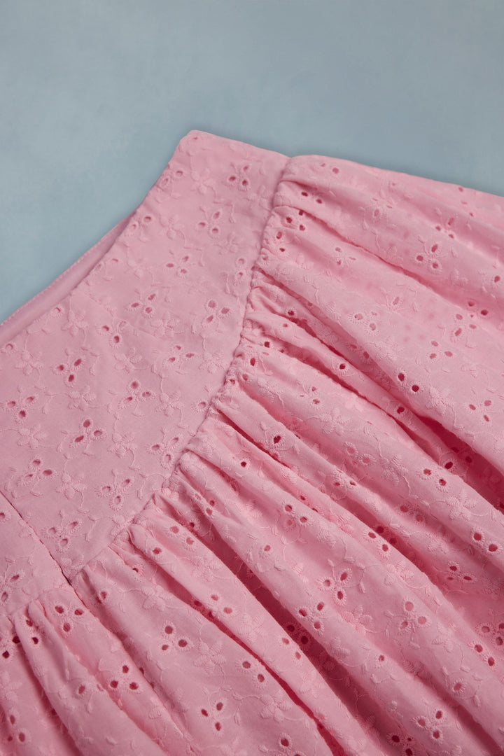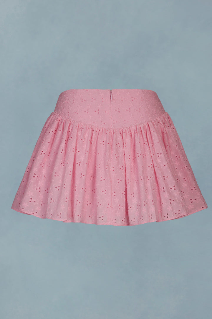 Açık Pembe Renkli Fiyonk Detaylı Broderie Anglaise Mini Etek