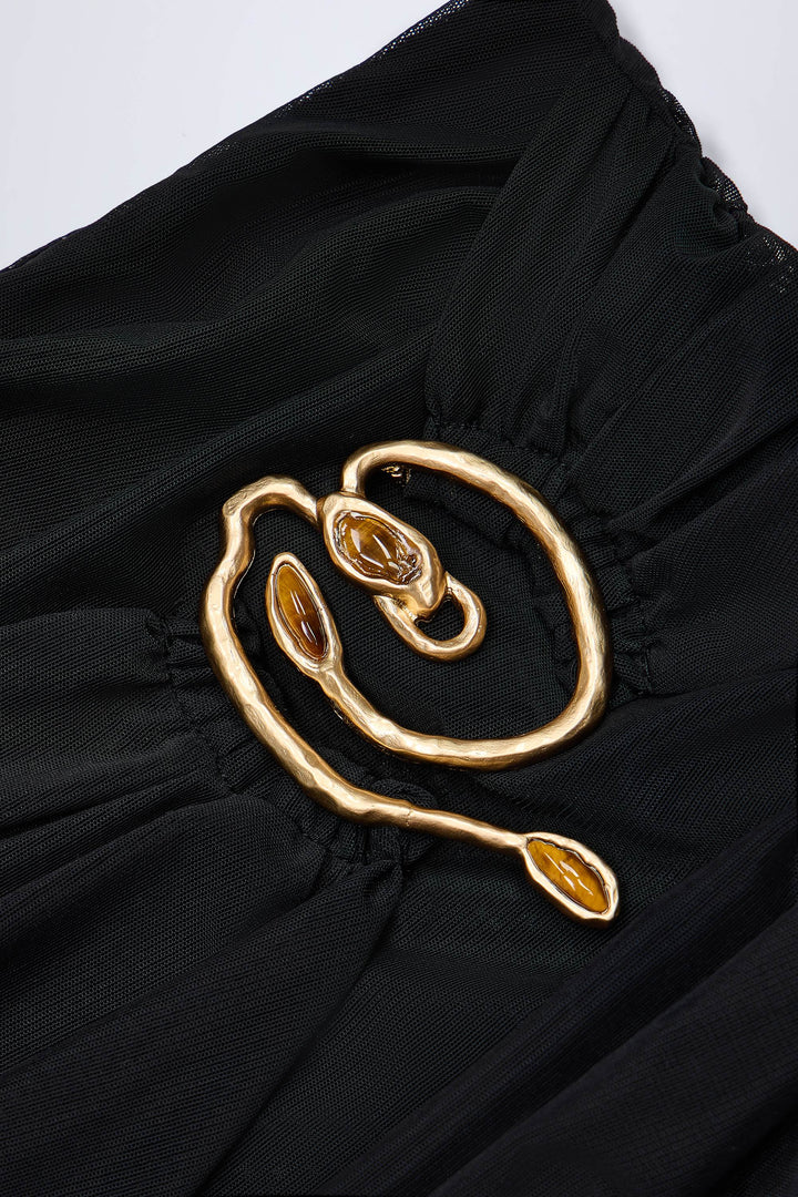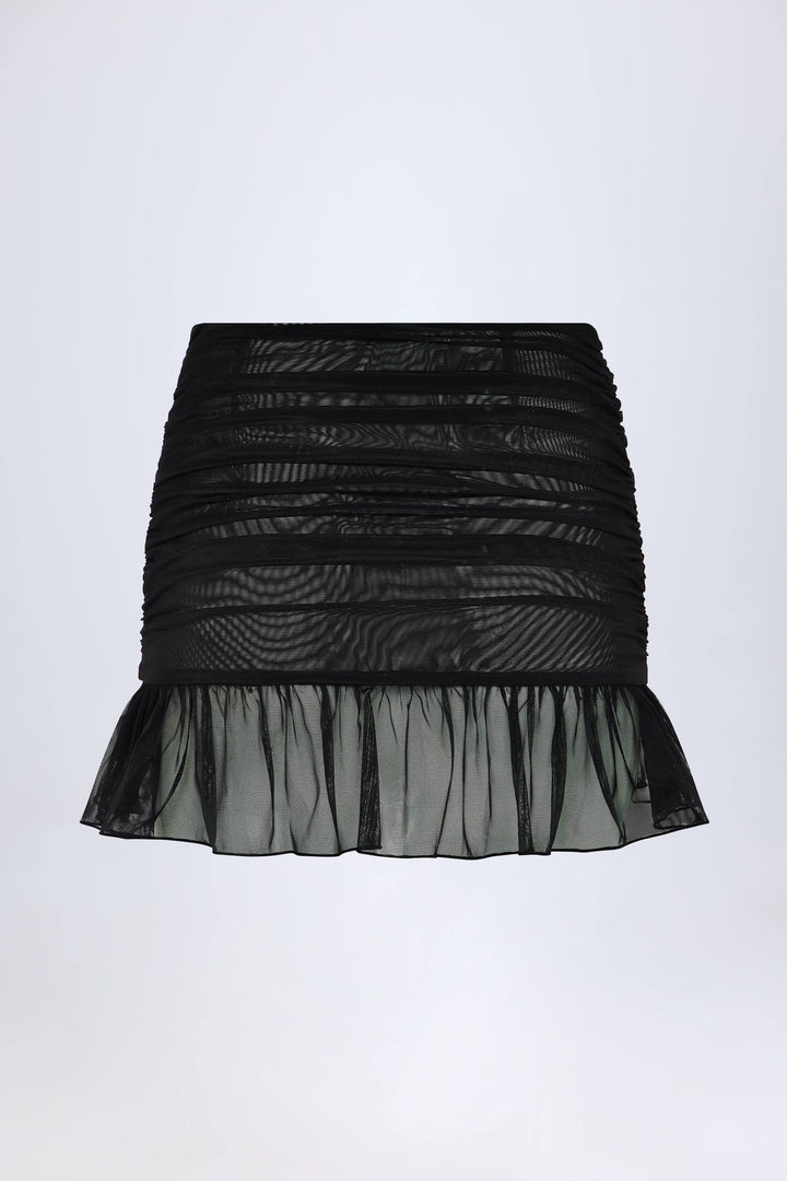 Siyah Donanım Detaylı Fırfırlı Orta Bel Mini Etek