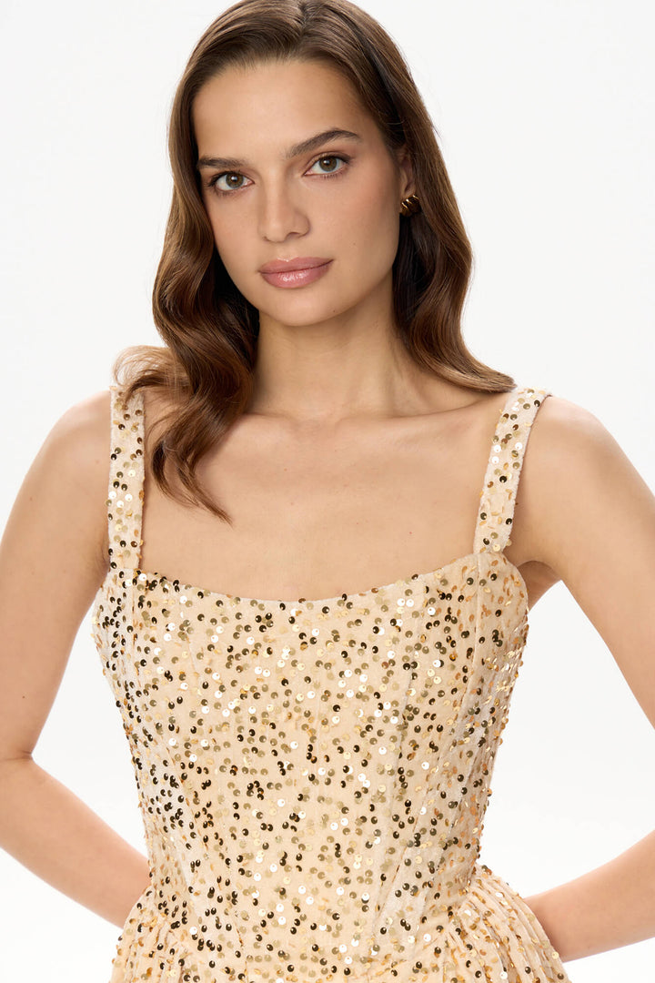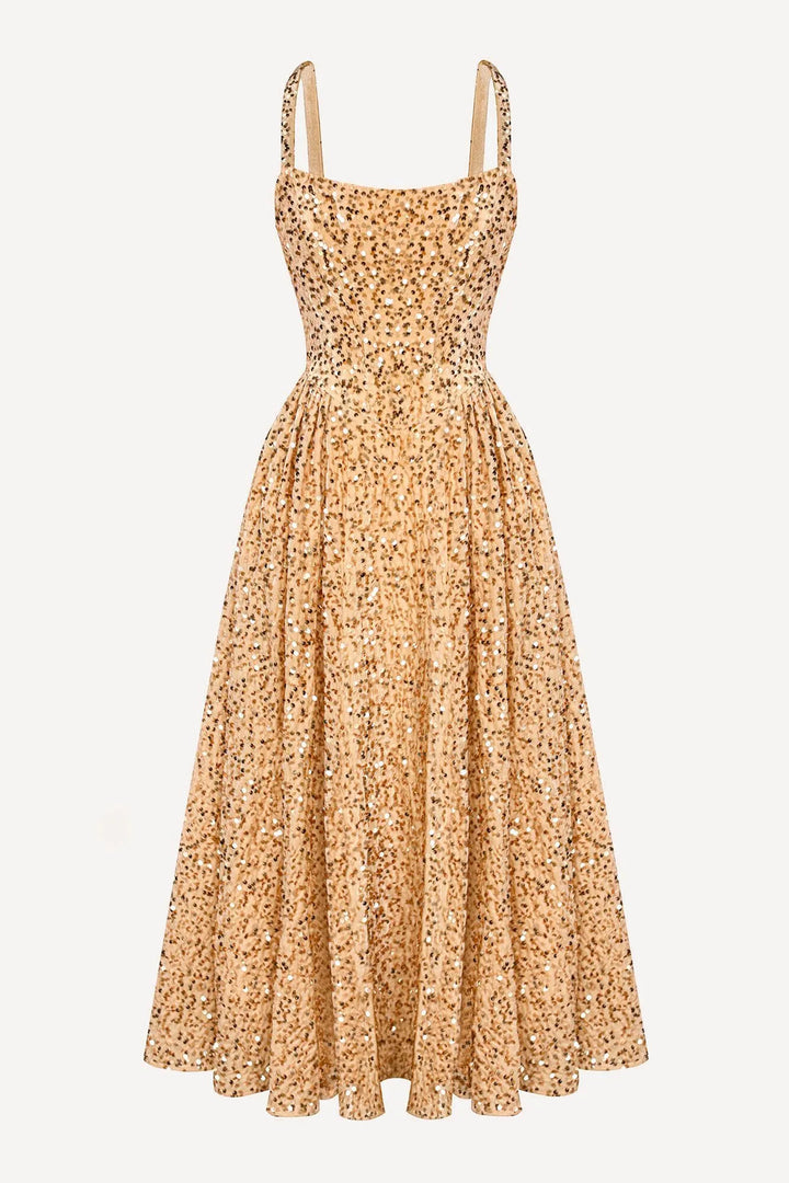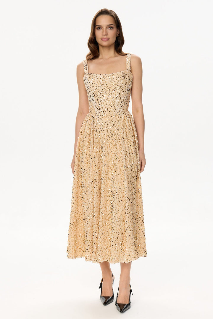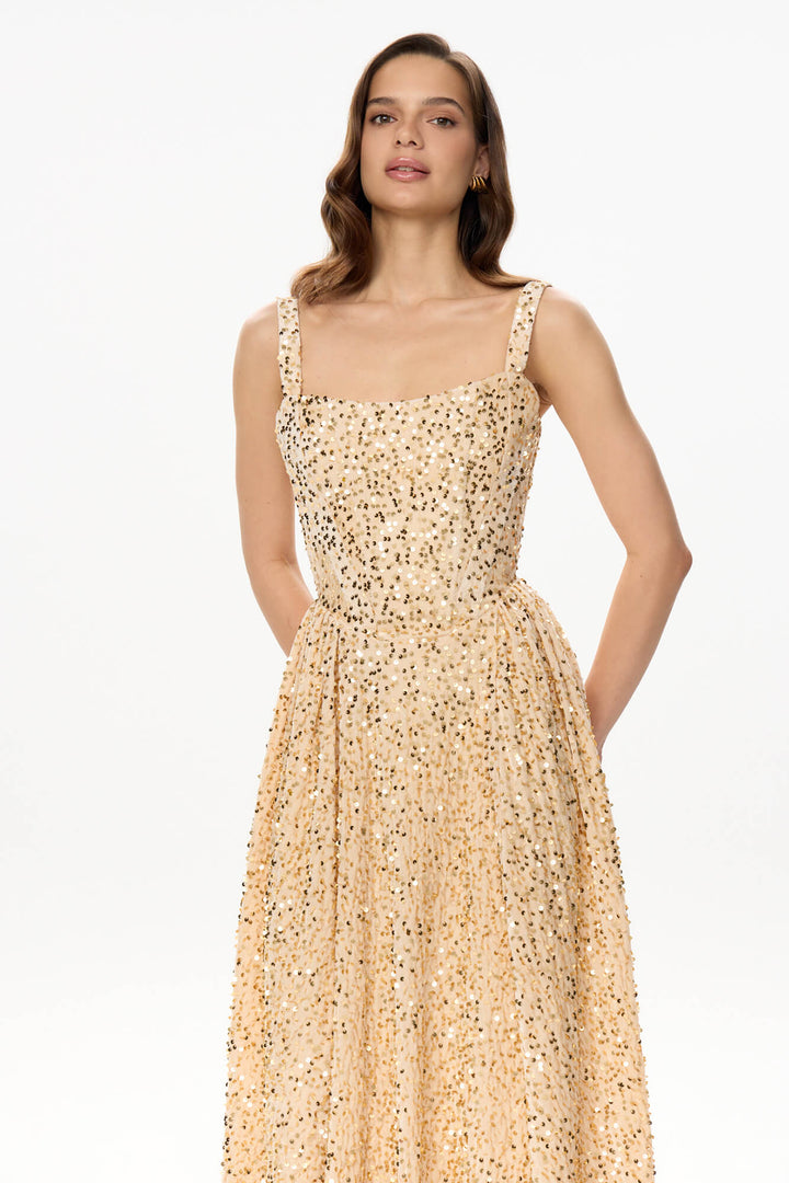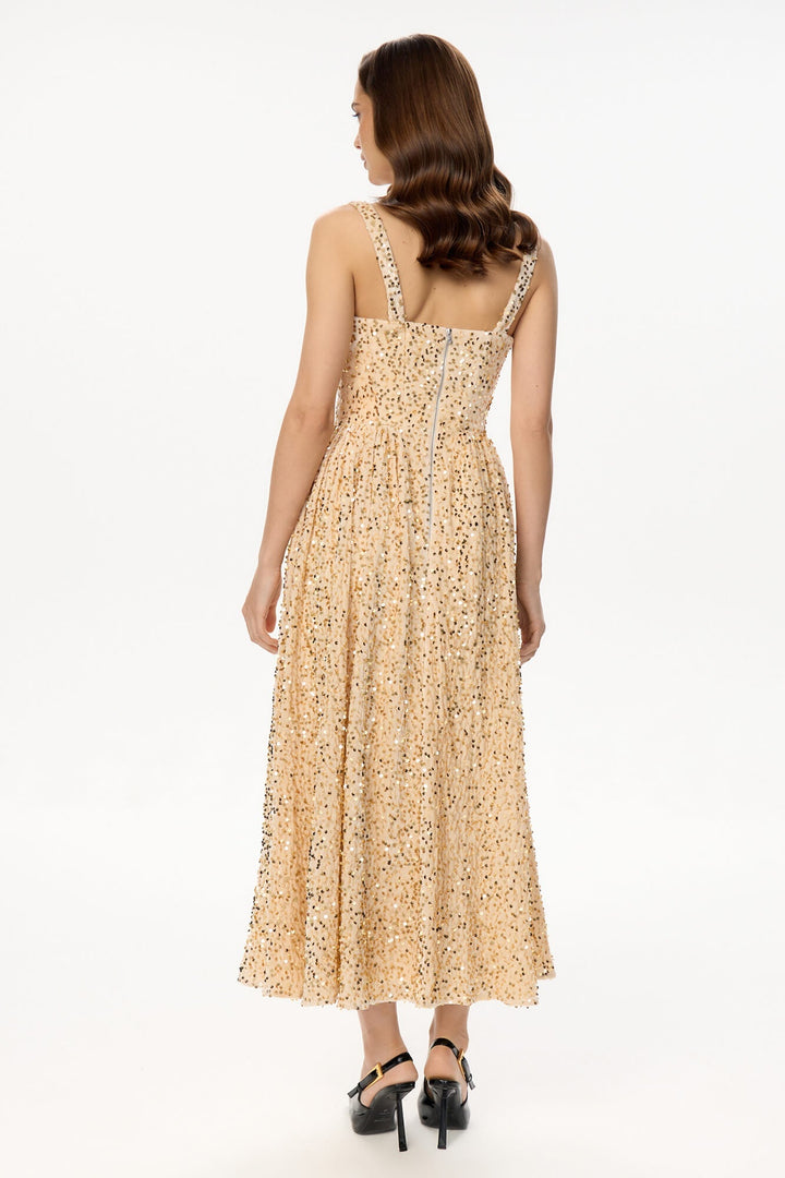 Tuck Korse Üst Midi Elbise