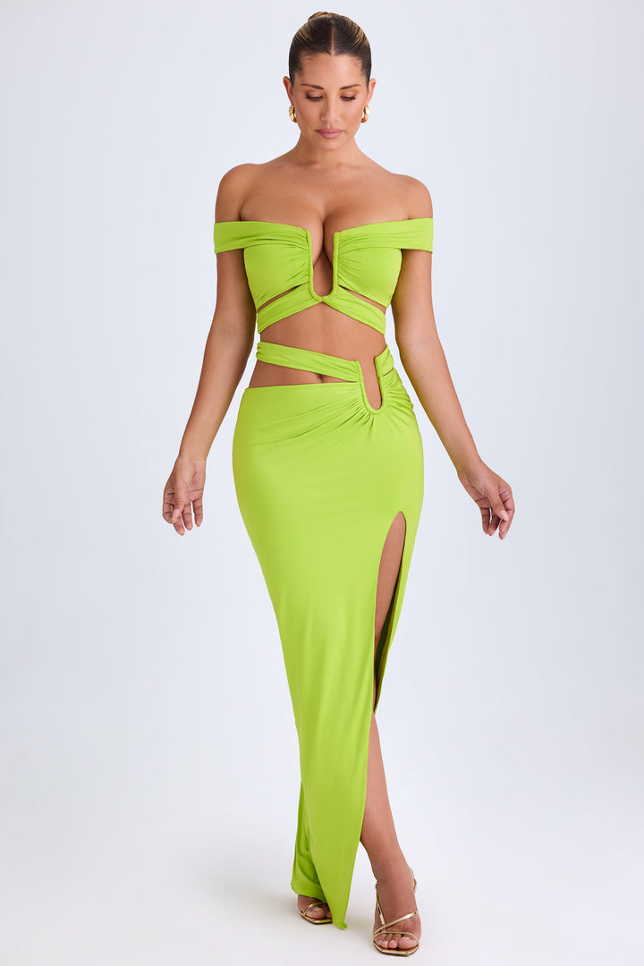 Kireç Yeşili Asimetrik Kesimli Uzun Etek