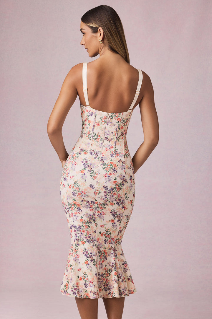 Katmanlı Sütyen Detaylı Balık Kuyruğu Midaxi Elbise Primrose Çiçek Desenli