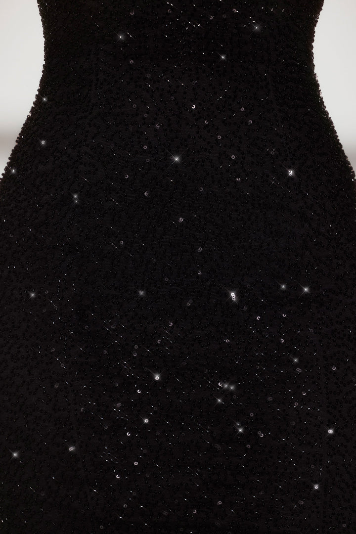 Siyah, Süslemeli Derin V Yaka Midaxi Elbise