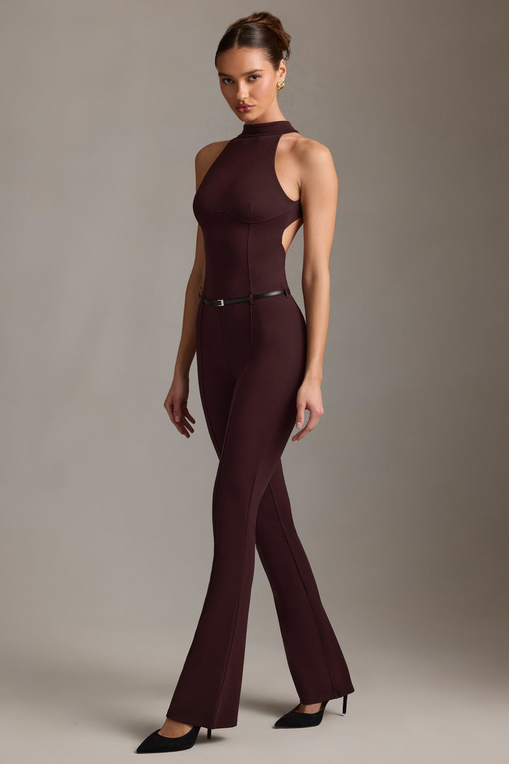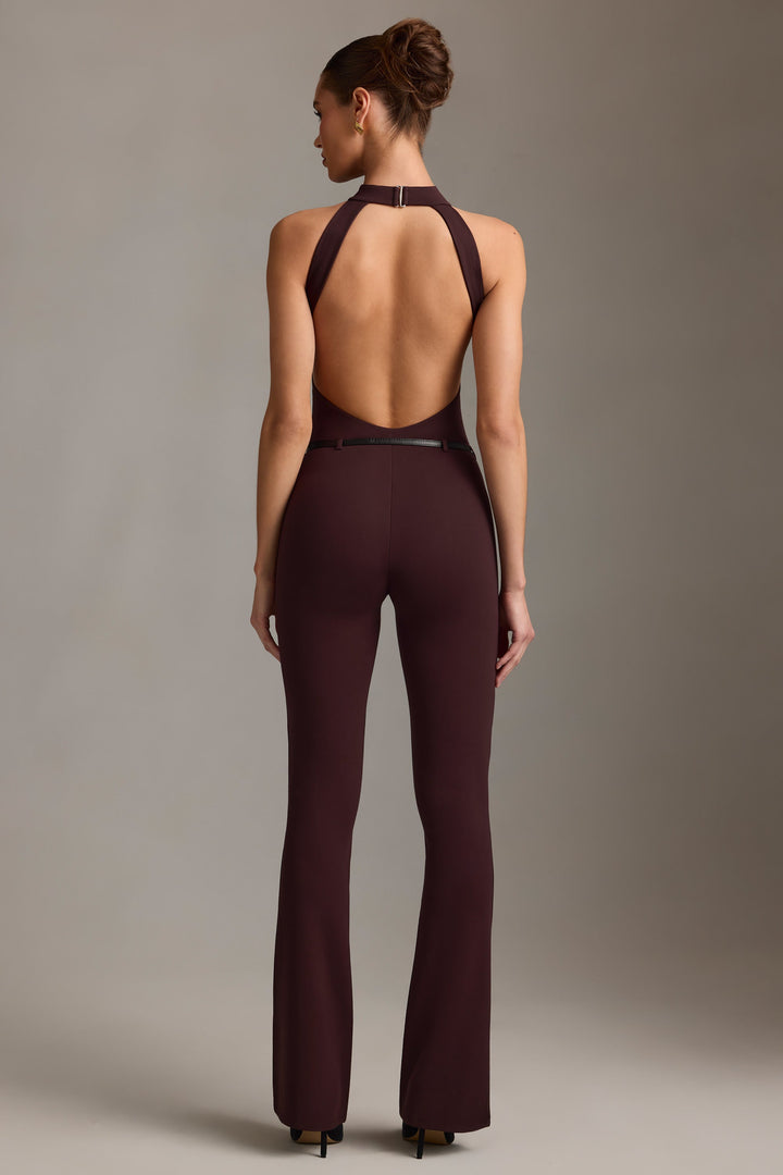 Çikolata Kahverengi Sırtı Açık Balıkçı Yaka Tulum