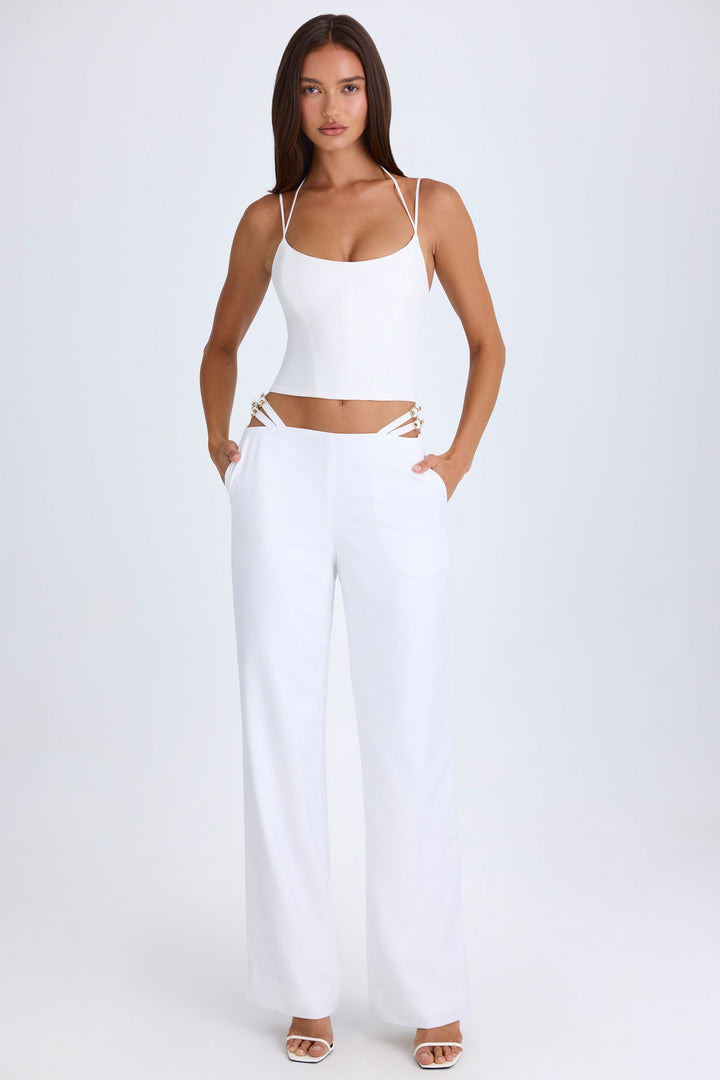 Beyaz Renkli Kemerli Kesimli Geniş Paça Pantolon